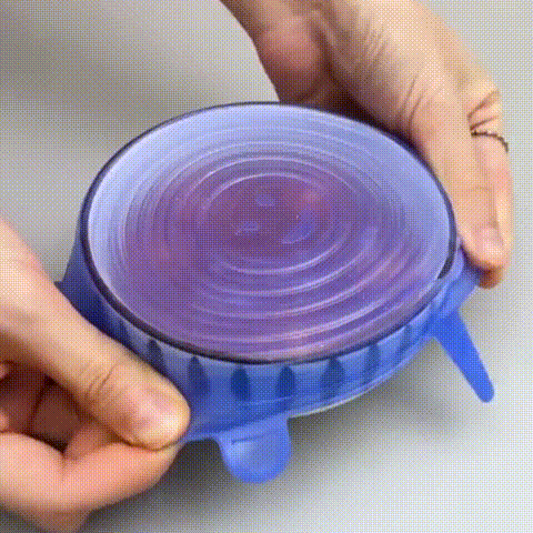 These silicone lids have super flexibility and elasticity, 6 different sizes (2.4in, 3.7in, 4.5in, 5.7in, 6.3in, 7.3in, elasticity can double stretch. Followed on the alien cup, jar, square and round bowl and fruits. Make sure both the lid and container are completely dry before use so that it can form a tight edge around the edges.
